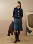 Brora Puppytooth Check Pleated Skirt, Jay/Navy