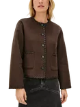 Melanie Contrast Stitch Cardigan, Dark Brown