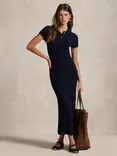 Cotton Blend Short Sleeved Sweater Dress, Navy