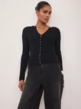 Mint Velvet Button Detail Ribbed Top, Black