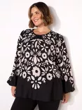 Live Unlimited Curve Graphic Floral Top, Black/Multi