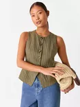Whistles Petite Lottie Pinstripe Waistcoat, Khaki/Multi