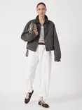 HUSH Contrast Collar Cropped Jacket, Charcoal