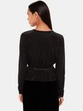 Whistles Velvet Stripe Wrap Cardigan, Black