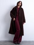 Topshop Faux Suede Long Car Coat, Brown, Brown
