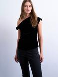 Topshop Slash Neck Ruched Long Sleeve Top, Red