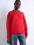 Topshop Fluffy Stripe Jumper, Burgundy/Multi