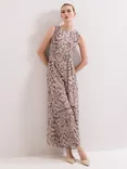 Phase Eight Janine Leaf Print Jumpsuit, Latte