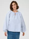KAFFE Nelly Stripe Cotton Tie Neck Blouse, Mid Blue