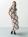 Asymmetric Pattern Cap Sleeve Check Midi Dress, Multi