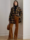Ralph Lauren Lauren Ralph Lauren Darda Check Wool Blend Shawl Collar Wrap Coat, Navy/Brown/Multi