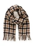 John Lewis Grid Wool Blanket Scarf, Tan Multi