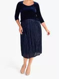 chesca Animal Print Velvet Bodice Midi Dress, Navy