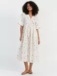 Etoile V-Neck Linen Blend Sun Dress, Cream