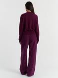 Chinti & Parker Wide Leg Velvet Trousers, Black, Claret