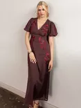 Maya Deluxe Floral Puff Sleeve V Neck Midi Dress