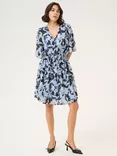 KAFFE Elina Floral A-Line Knee Length Dress, Blue/Multi