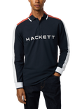 Hackett London Sport Long Sleeved Polo Top, Navy/Multi, Navy/Multi
