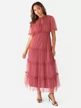 Anaya With Love Flutter Sleeve Keyhole Tulle Midaxi Dress, Garnet Rose