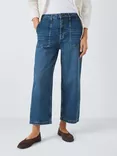 John Lewis Cropped Wide Leg Jeans, Blue Mid Wash