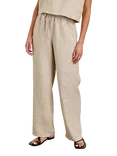 Emmie Linen High Waist Wide Leg Trousers, Beige