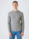 GANT Cotton Cable Knit Crew Neck Jumper, Grey Melange