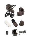 egg 3 Pushchair, Carrycot & Accessories with Egg Shell Car Seat and Base Luxury Bundle, Chocolate Velvet