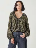 HUSH Elise V-Neck Animal Print Top, Khaki/Multi