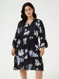 KAFFE Curve Edina Ami Floral Dress, Black/Blue