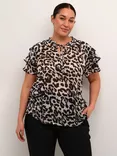 KAFFE Curve Saphia Leopard Print Top, Black/White