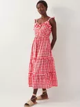 Monsoon Geena Abstract Midi Dress, Coral/White