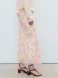 Mango Christy Floral Midi Skirt, Pastel Pink