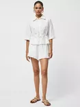 French Connection Amra Cotton Gathered Mini Dress, Linen White