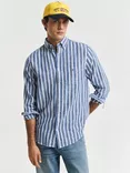 Linen Blend Regular Fit Stripe Shirt, Rich Blue