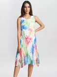 Gina Bacconi Cressida Floral Asymmetric Dress, Aqua Blue