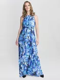 Gina Bacconi Maria Maxi Printed Sleeveless Dress, Royal Blue