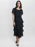 Gina Bacconi Tessa Tiered Shoulder Trim Midi Dress, Black
