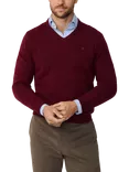 Hackett London Pure Wool V-Neck Jumper, Burgundy Red