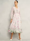Hobbs Petite Fay Floral Pure Silk Dress, Pink/Multi