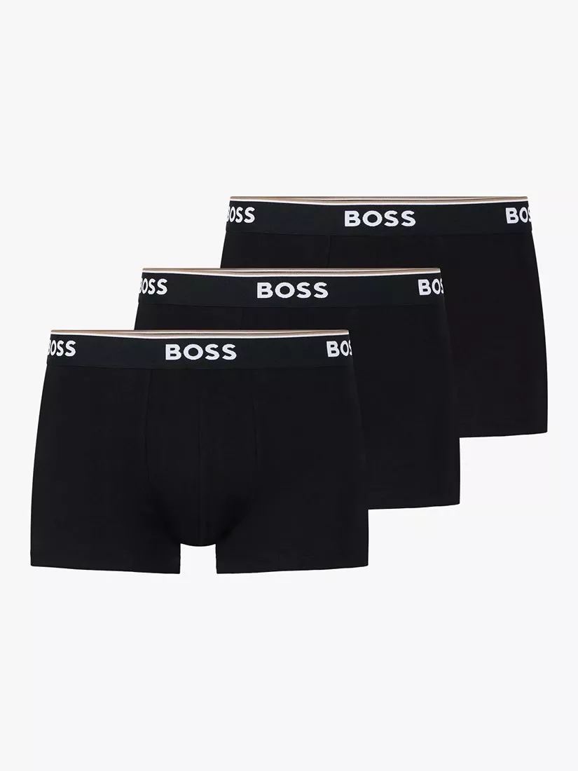 HUGO BOSS BOSS Power Cotton Logo Waistband Trunks, Pack of 3