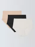 John Lewis Modal and Narrow Lace Bikini Knickers, Pack of 3, Black/White/Almond, Black/White/Almond