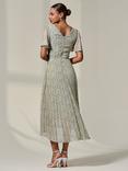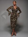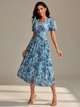 Jolie Moi Floral Frill Detail Mesh Dress, Blue