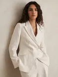 Reiss Devon Linen Blend Double Breasted Blazer, White