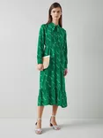 L.K.Bennett Bridget Monkey Print Silk Blend Midi Dress, Green/Cream