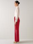 L.K.Bennett Shimmer Sequin Wide Leg Trousers, Red Salsa