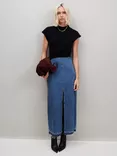 Ro&Zo Split Front Denim Maxi Skirt, Blue