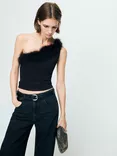 Mango Plumi Ruffle Trim Top, Black