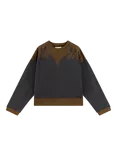 Leon & Harper Siena Leaf Embroidered Cotton Blend Sweatshirt, Grey/Brown