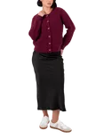 Lovedrobe Bow Button Ribbed Cardigan, Burgundy