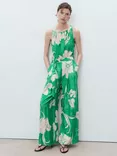 Floral Belted Sleeveless Jumpsuit, Green/Multi